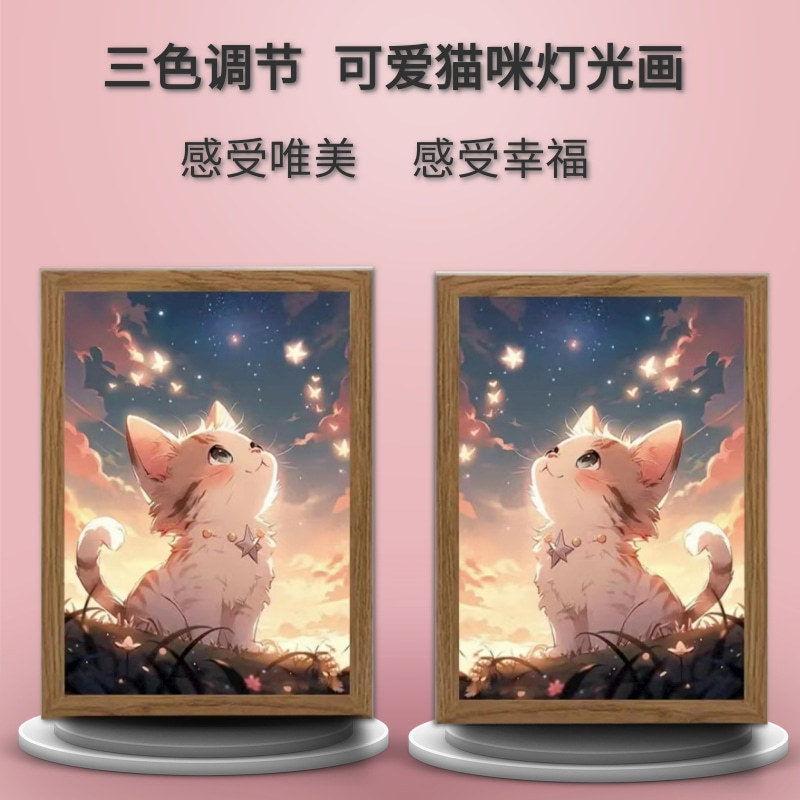 癒しの子猫ライトペインティング女の子への誕生日プレゼントアニメ発光絵画寝室ナイトライト