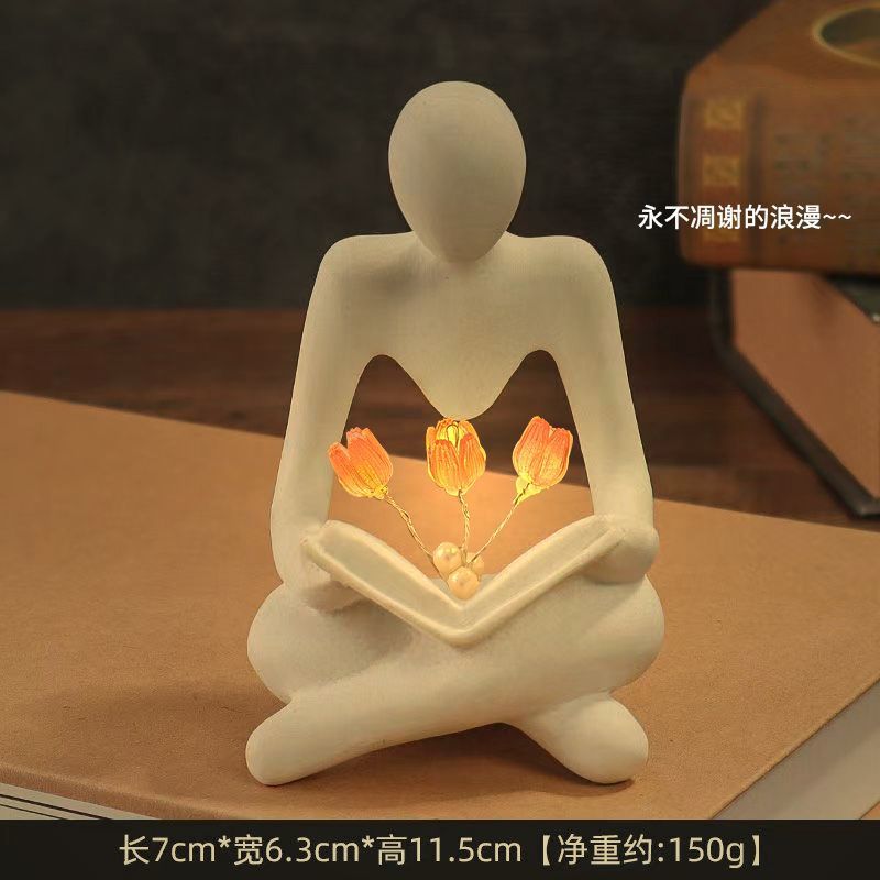 艺术高级感抽象人物郁金香小夜灯摆件创意卧室装饰七夕节生日礼物