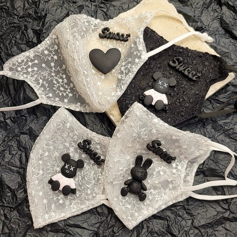 四季調節可能な耳掛け試験メッシュマスクレース刺繍漫画マスク立体マットファッション日焼け止めマスク