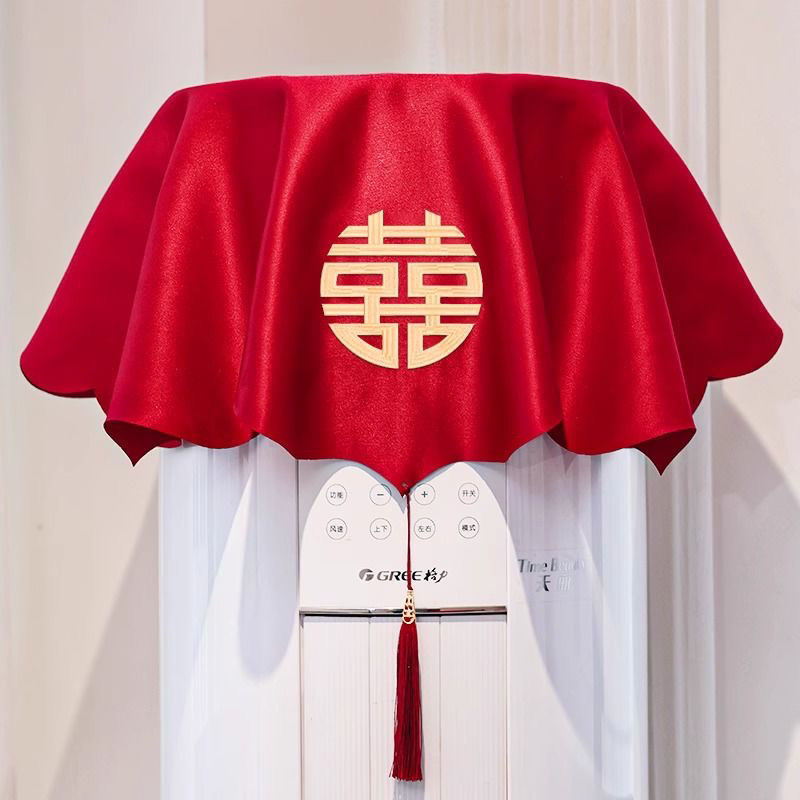 结婚空调罩立式圆柱形防尘罩床头柜刺绣盖布婚房布置红色喜字盖头