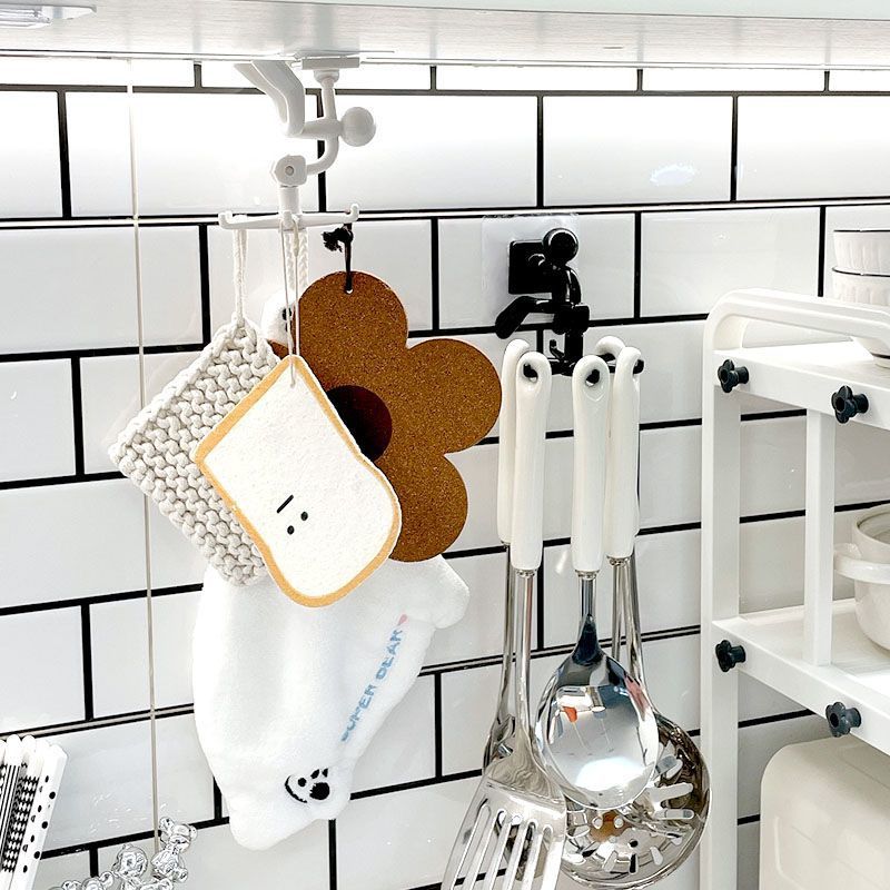 キッチンスパチュラ、スプーン、6本爪回転フック、リビングルーム多目的収納、パンチフリー、強力な家庭用粘着フック
