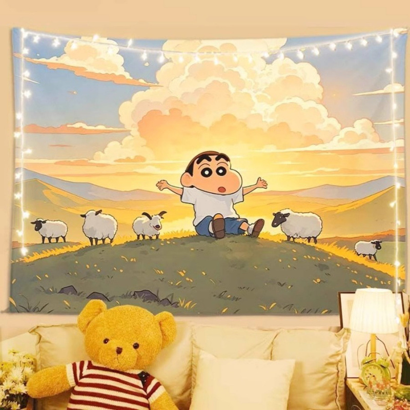 蜡笔小新背景布动漫卡通可爱挂布宿舍墙面装饰背景房间床头布置画