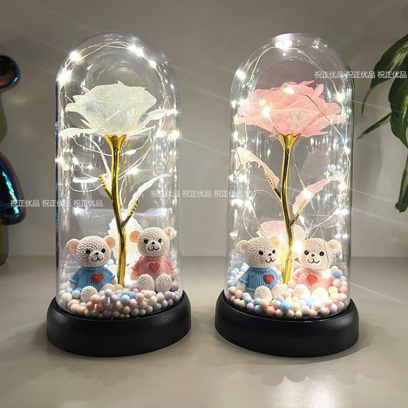永生花塑料罩发光玫瑰小朋友女孩生日礼物送女生氛围灯