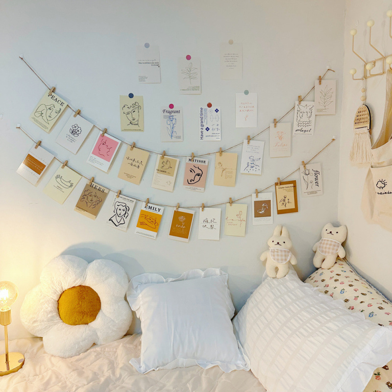 寝室の部屋の壁の装飾女子寮の雰囲気レイアウト変身ベッドサイドの壁のステッカー写真の壁