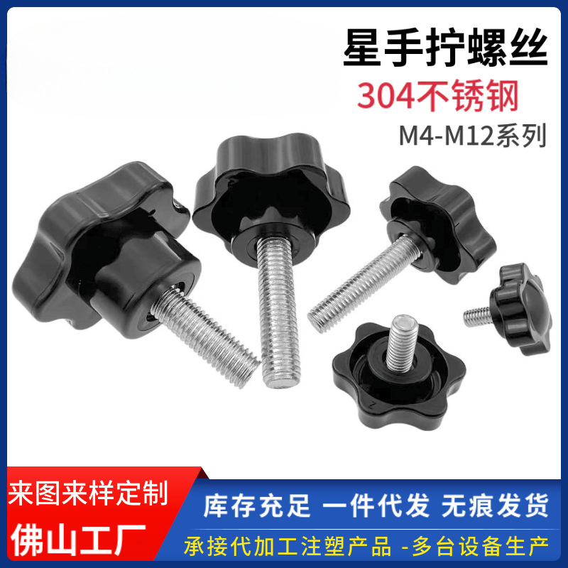 304ステンレス六角梅の花の手はねじのプラスチックの頭をねじってゴムの取っ手のノブを包んでねじの星型の取っ手を調節します。