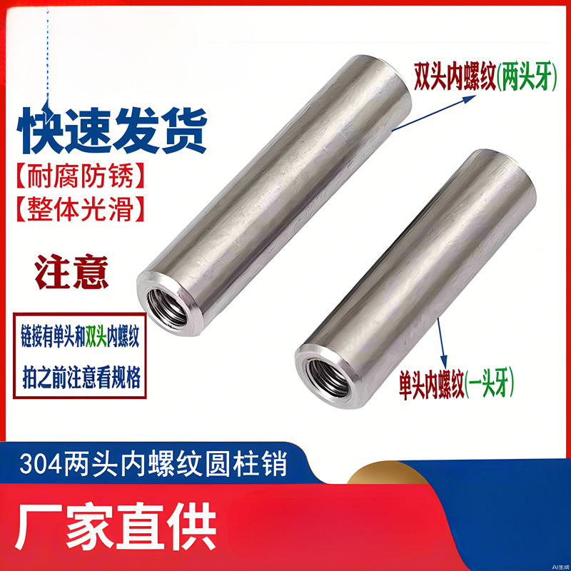 304 ステンレス鋼双頭雌ねじ円筒ピン穴付きピン位置決めピンサポートコラムスタッド M4M5M6M8