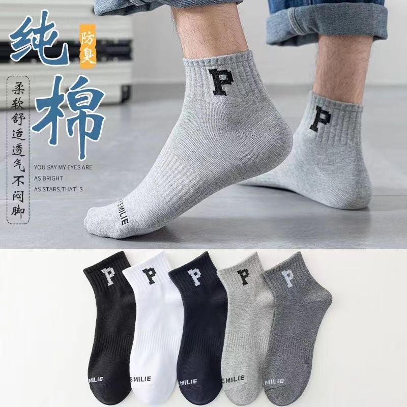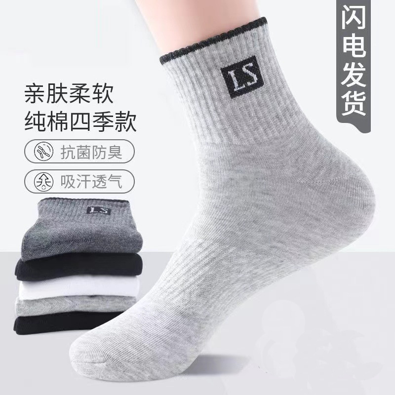 メンズ靴下吸汗通気綿防臭スポーツソックス四季型百合純色中筒靴下秋冬