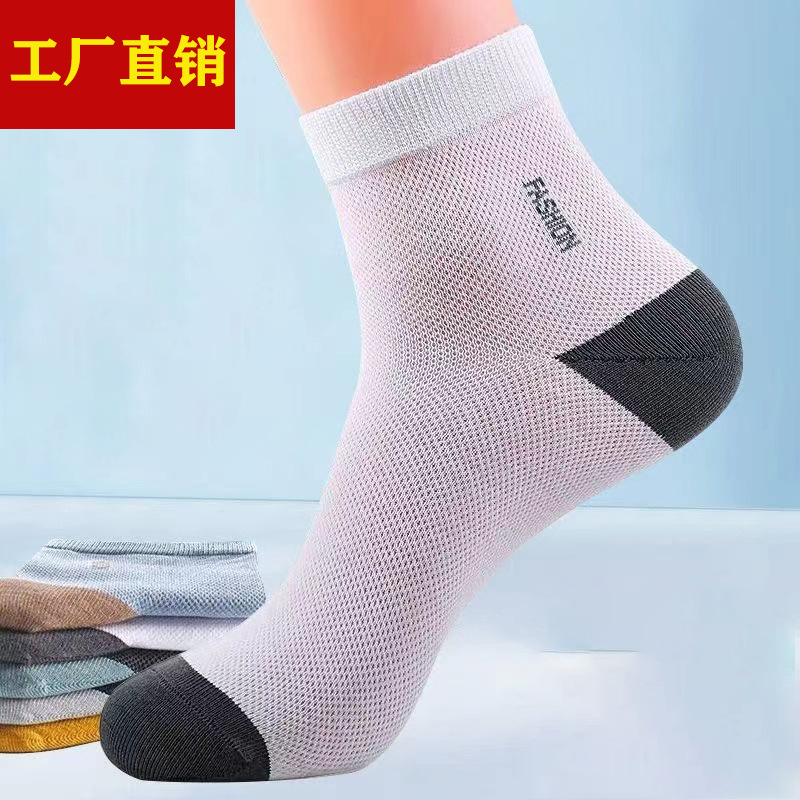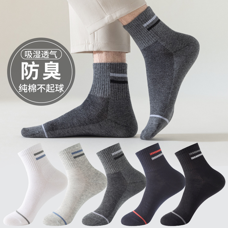 メンズ靴下吸汗中筒春夏超薄型メッシュ四季長筒運動通気靴下