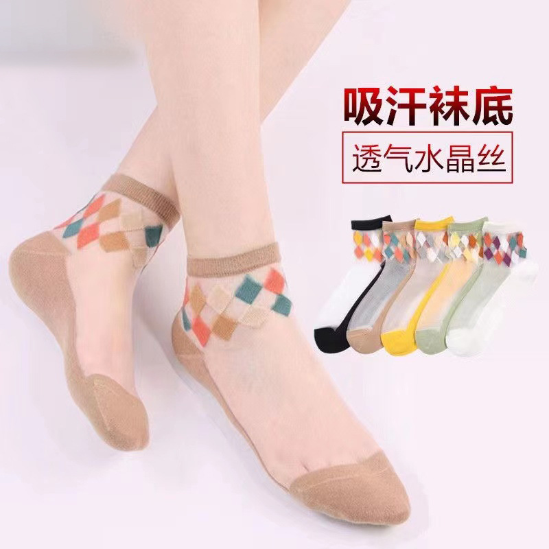 ショートソックス女性の夏の薄いタイプのかわいい日本の中筒のガラスのストッキングの水晶の氷のストッキングの夏の靴下の潮流の百