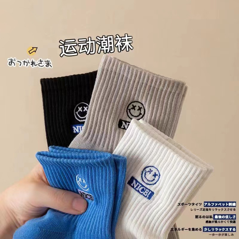 靴下春秋中筒靴下男女カップル靴下スポーツ男子ストッキング防臭吸汗百合笑顔ファッション靴下