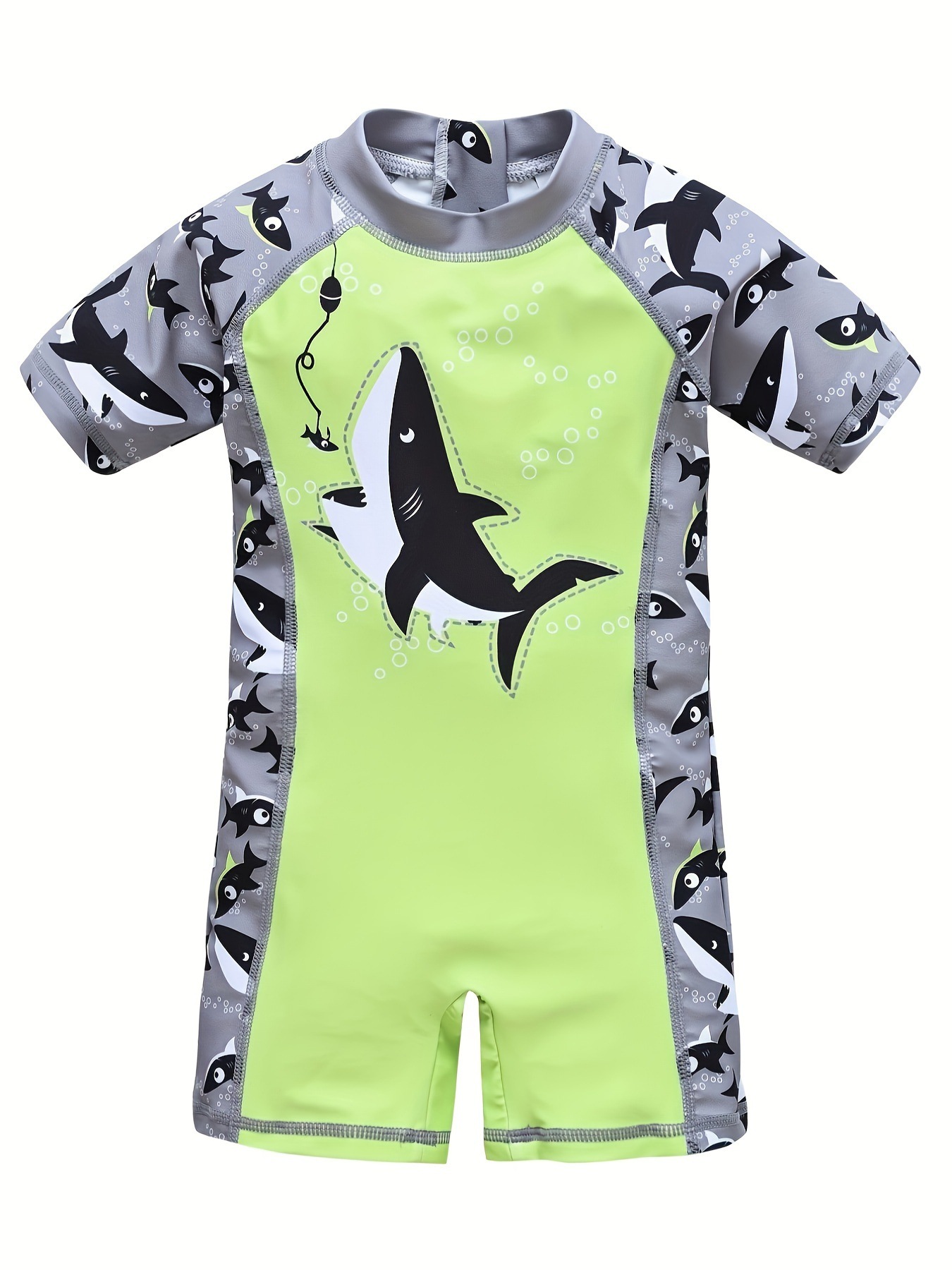 2025 新しいクロスボーダーヨーロッパとアメリカの少年漫画サメ柄弾性ワンピース水着クロスボーダードロップシッピング