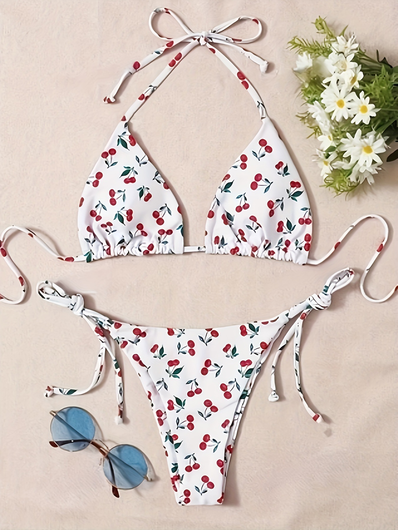 2025 クロスボーダー新ヨーロッパとアメリカのビーチプールセクシーなチェリープリントビキニスプリット水着