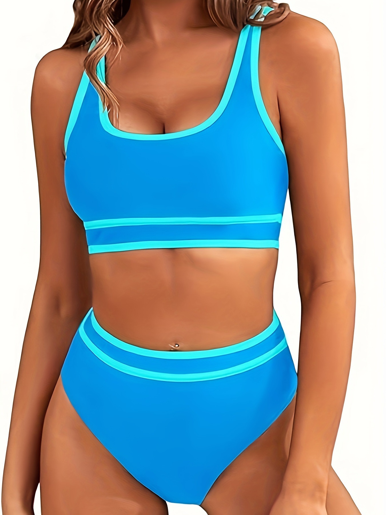 2025 クロスボーダー新しいヨーロッパとアメリカの女性のハイウエストビキニスポーツファッション水着セット