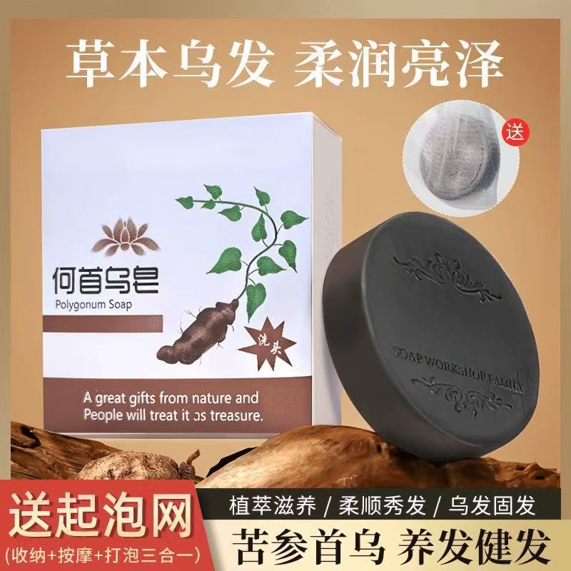 何首烏のシャンプー石鹸の古い国産品は髪を洗って髪の毛を生やして減らします。