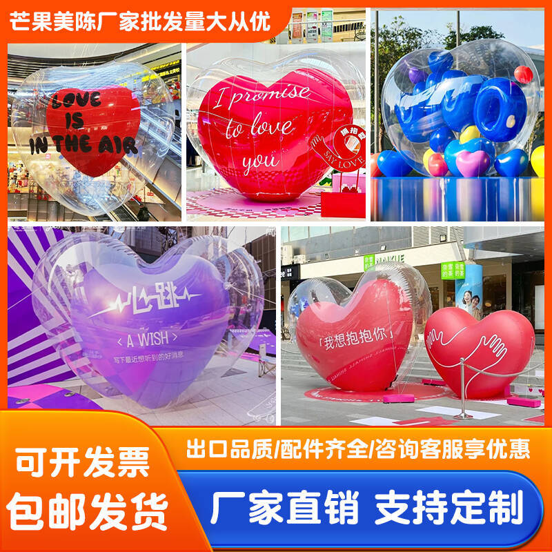 源工場の空気入れ透明愛気模カスタマイズハート型ネット赤カード閉鎖PVCデパート美陳印字