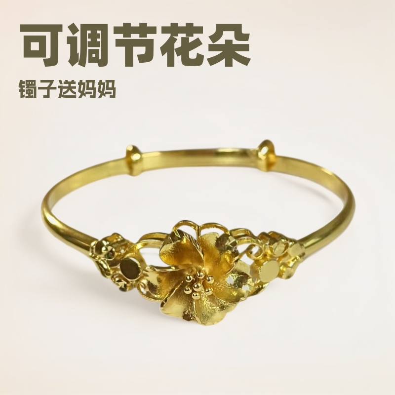 新中式金メッキ蓮の花ブレスレット レディースジュエリー ファッション レトロ 多用途 花柄ブレスレット 模造金ジュエリー ハンドアクセサリー