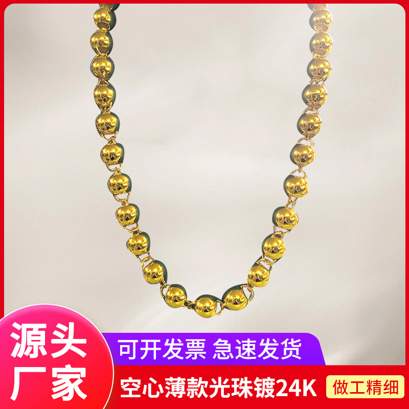 真空メッキ24Kイミテーションゴールド高品質ラウンドビーズチェーン、女性用の威圧的な軽贅沢で個性的なゴールドメッキネックレス、男性用ジュエリー