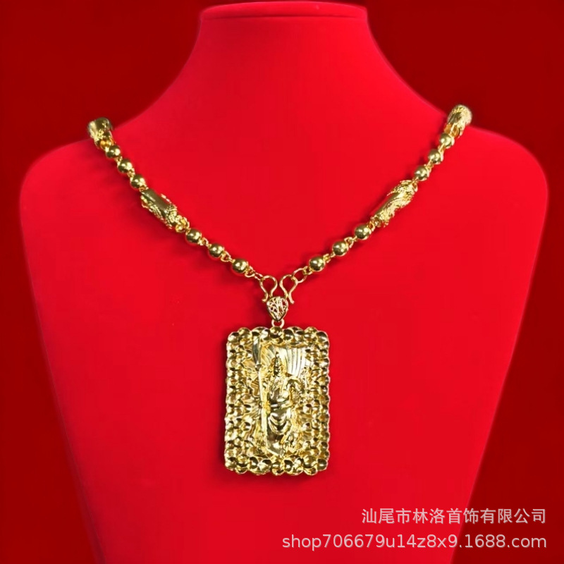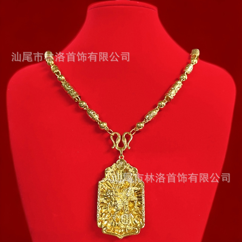ベトナムサンドゴールド関公ペンダントメンズ横暴な個性ジュエリーオリーブビーズニッチドラゴンパターンネックレスジュエリー大きな祝福の言葉