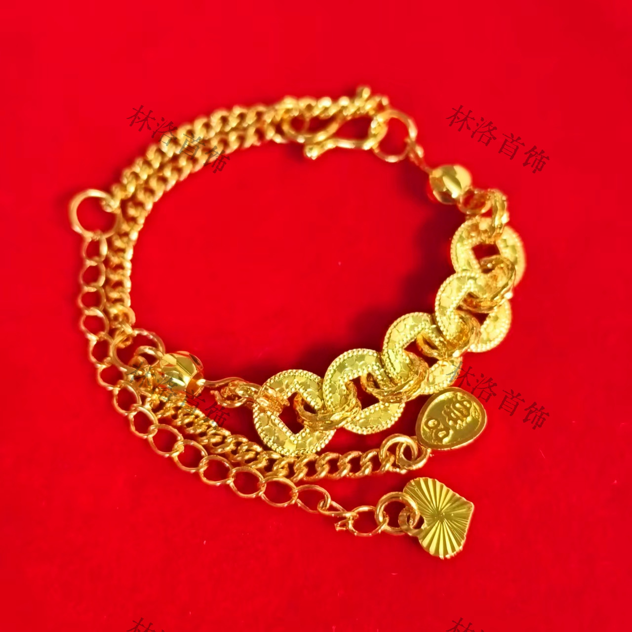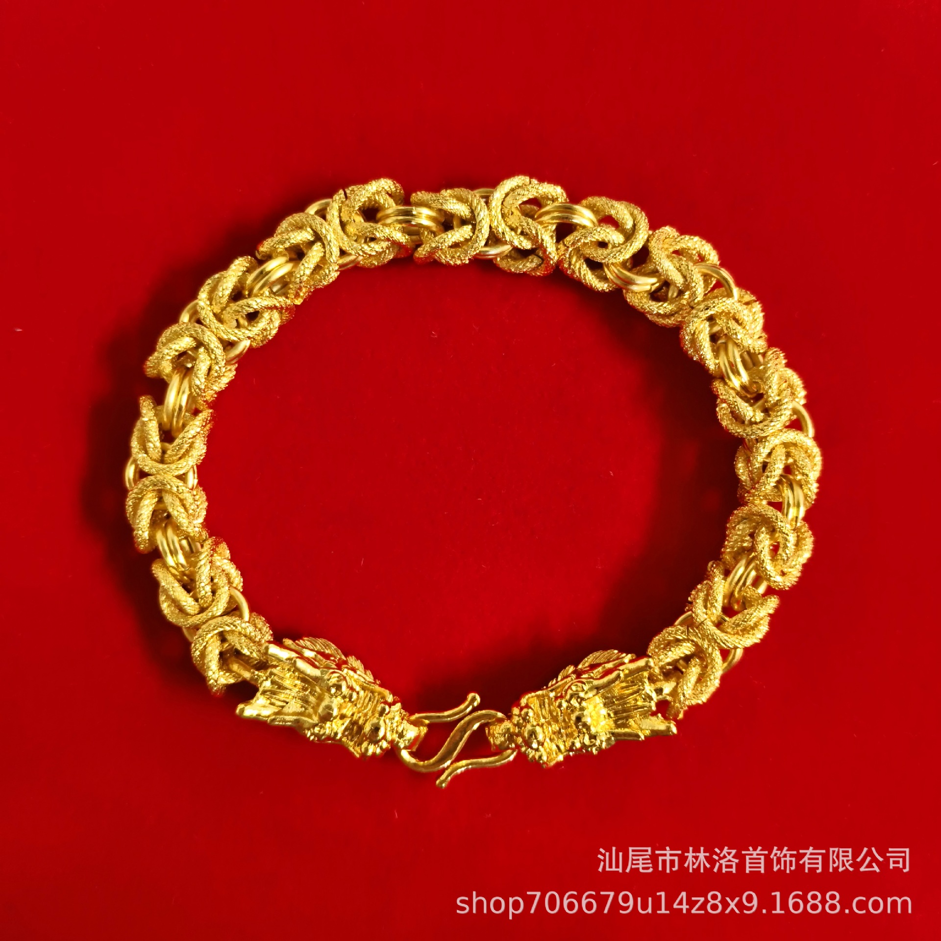 ベトナムサンドゴールドジュエリーダブルドラゴンブレスレットメンズファッションライト高級電気メッキゴールドメッキジュエリーパーソナライズされたガールズハンドジュエリーストール