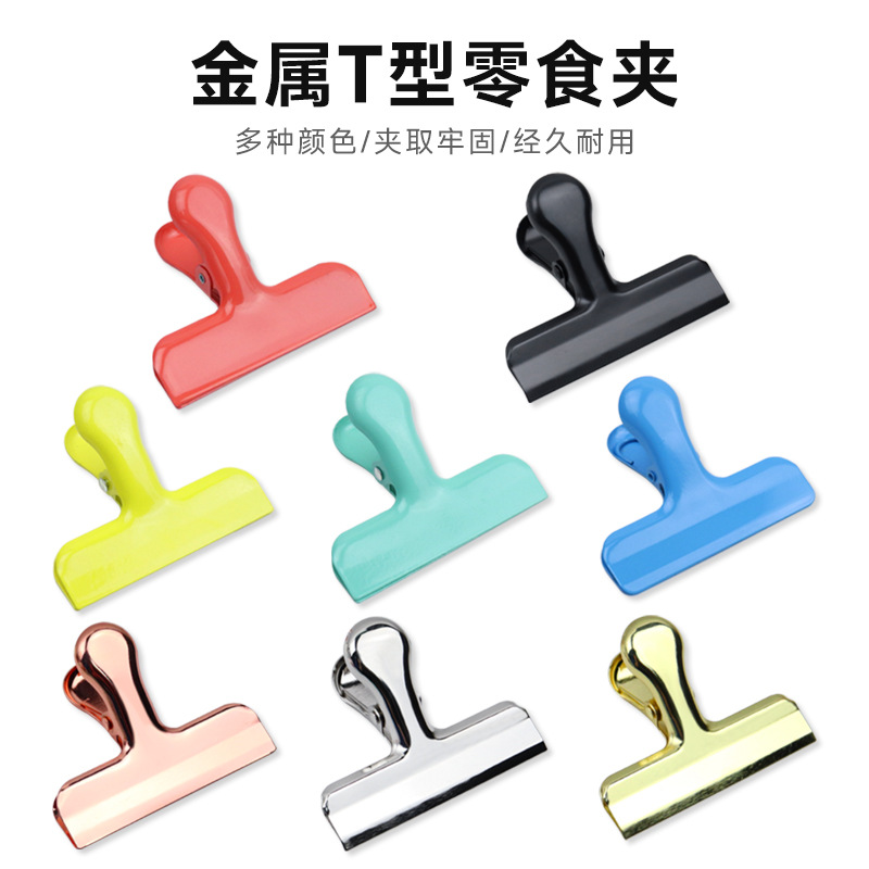 カラフルな金属製強力T型クリップ 食品シールクリップ 書類・チケット・スナック・食品用クリップ 家庭用鮮度保持シール