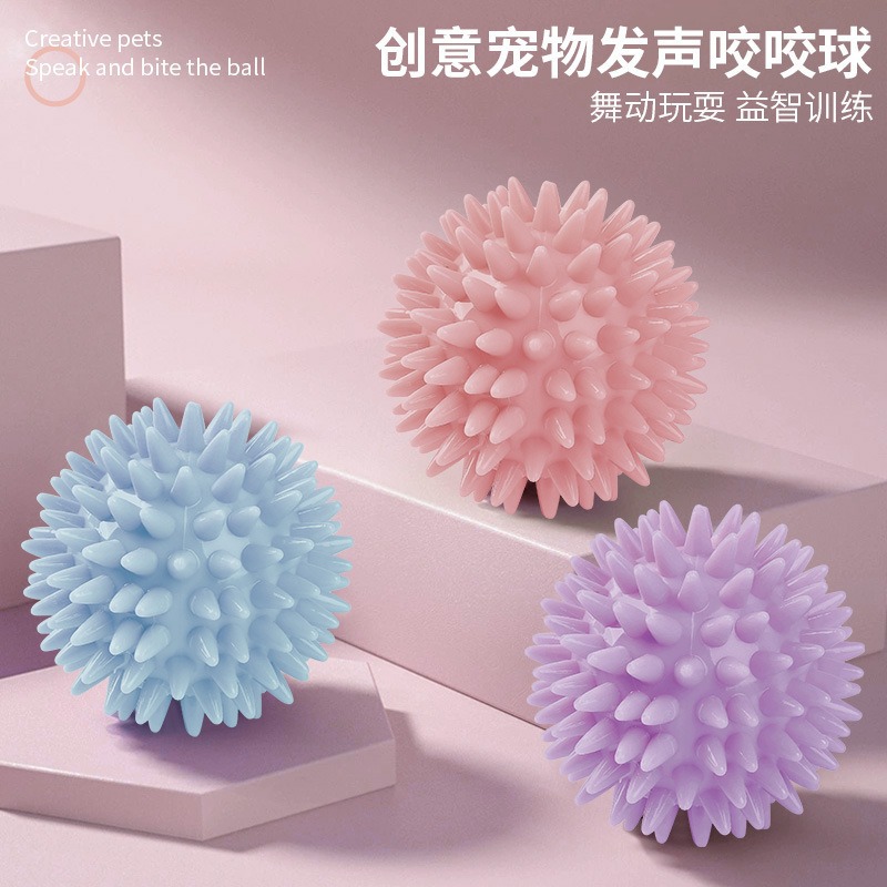 歯ぎしりと噛みつきに強いTPR中空長毛ボールペットおもちゃマカロンカラー音犬インタラクティブおもちゃとげボール