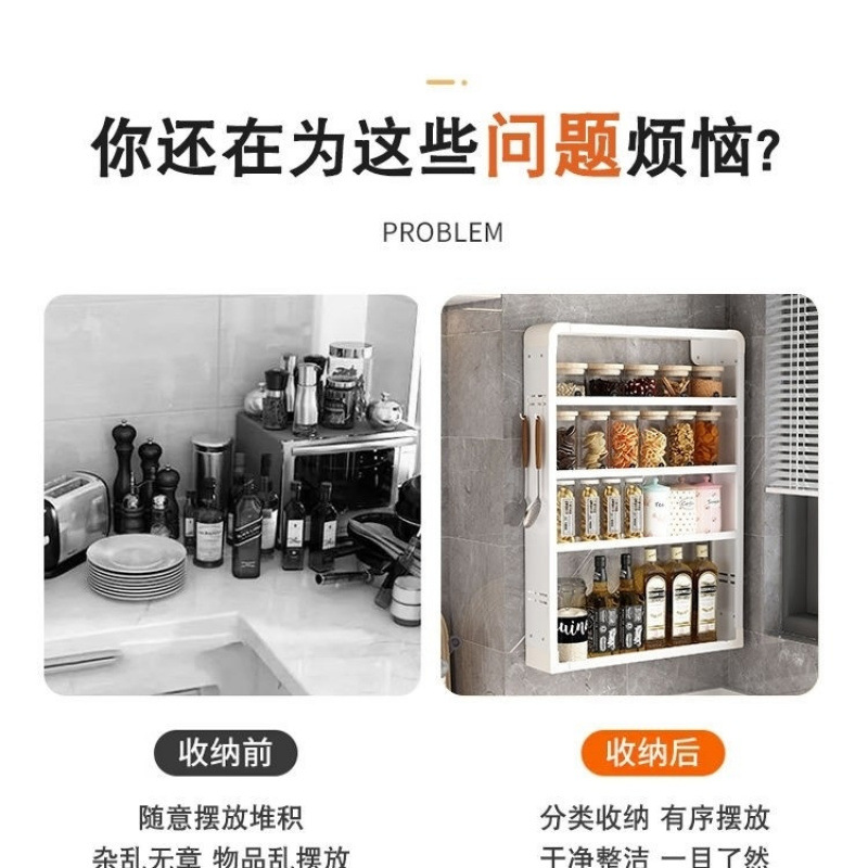 台所の穴なし壁掛け式調味料棚は、層別油塩渍け酢多機能収納棚を調節できる