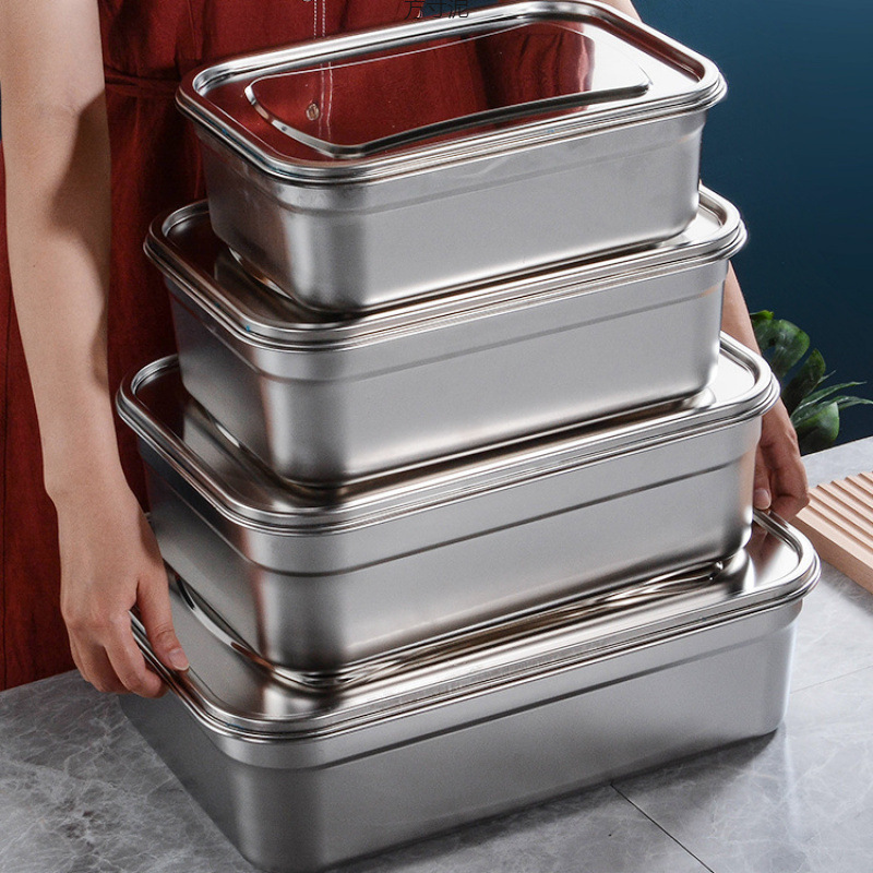 304ステンレス保冷箱長方形蓋付き密封大容量弁当箱冷蔵庫収納ケース
