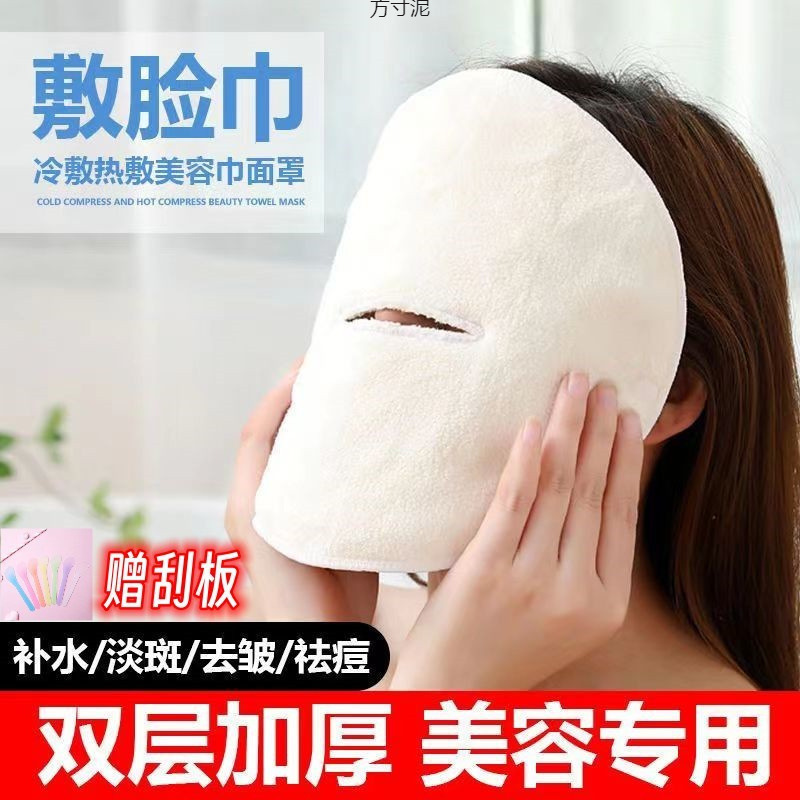 フェイスタオルを敷いて、顔をきれいにします。家庭用保湿マスクを温めて、顔を厚くします。