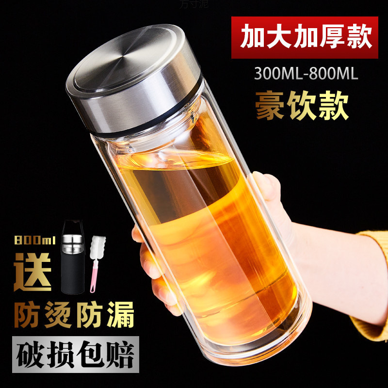 大容量二重グラスシンプル男性家庭用コップ携帯透明蓋付きティーカップ子供