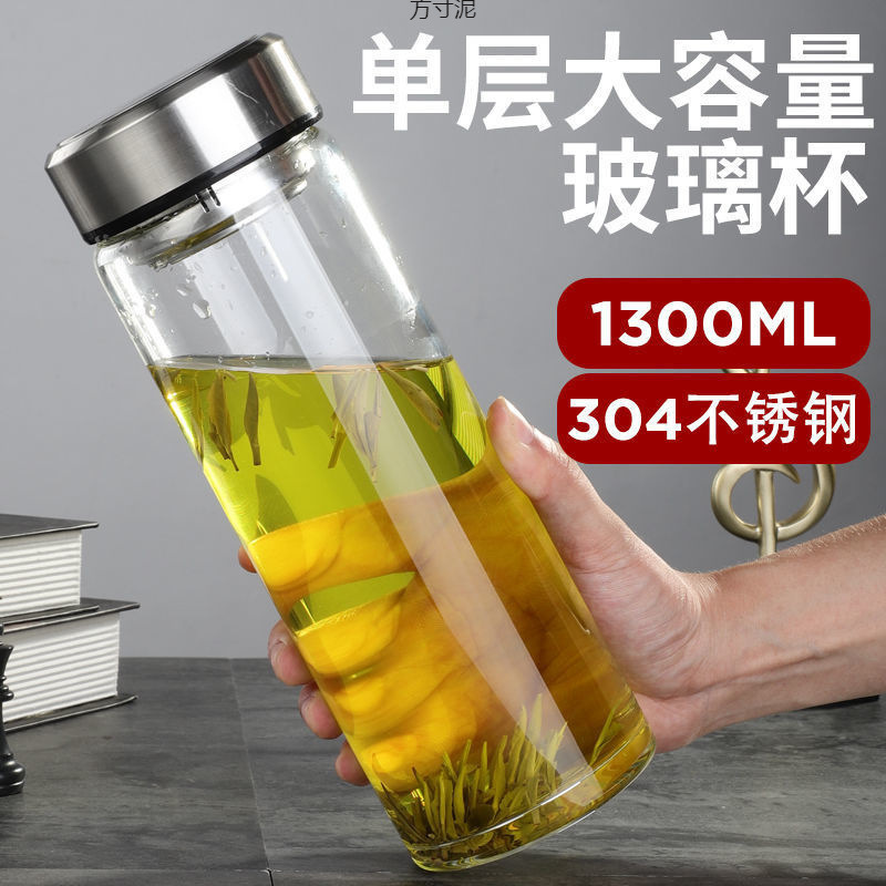 男女大容量単層ガラスコップ厚金透明運動コップ耐熱蓋付きカップ卸売り