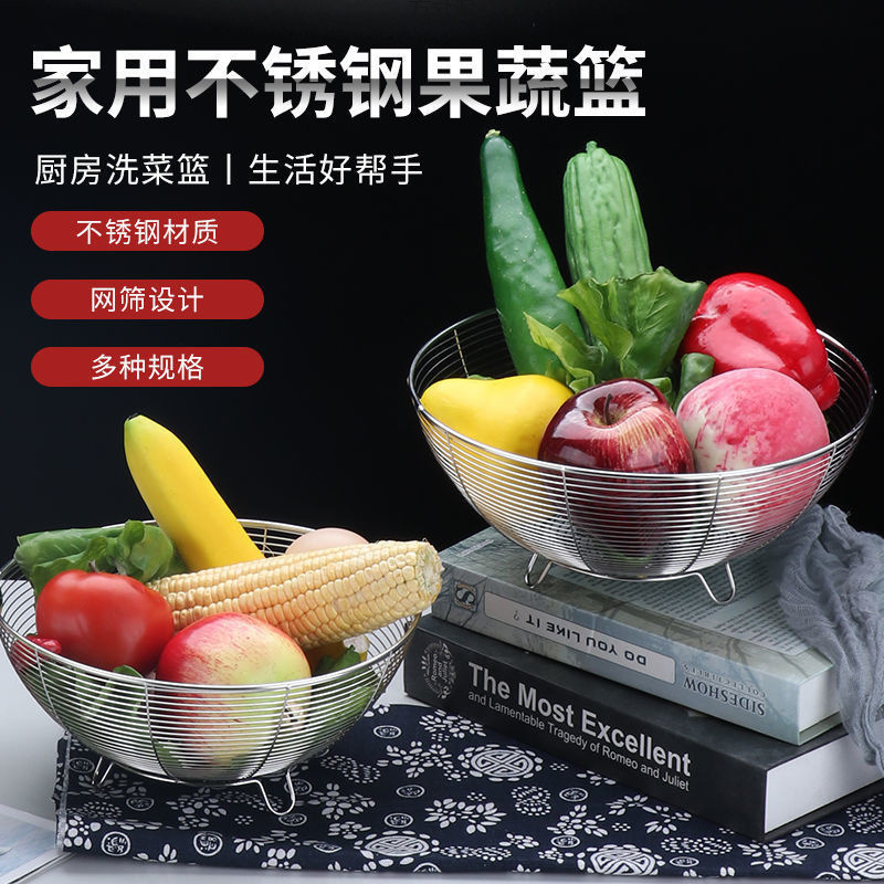 ステンレスの果物かごの台所の野菜を洗う鉢の果物と野菜のふるいの丸い野菜かごの水切りかごの野菜かご