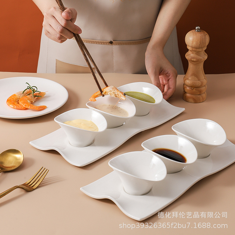 創意異型の白い陶磁器の味皿はトレーの調味料の碗の皿のホテルの食器のホテルの専用の冷たい料理の碗を持っています。