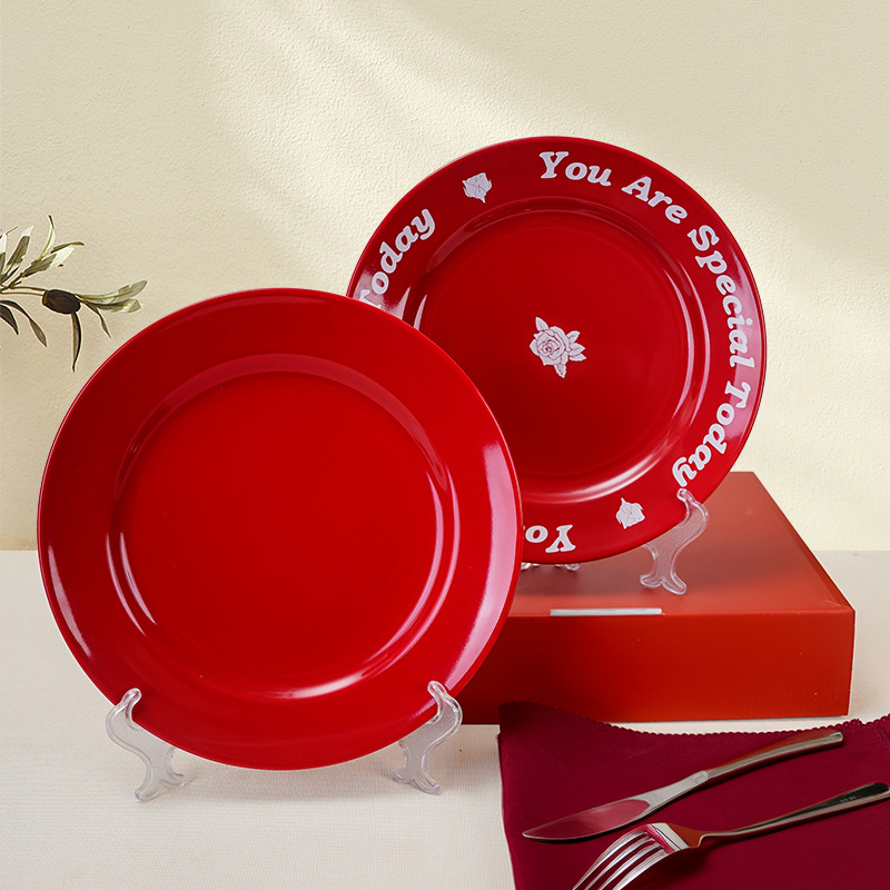 国境を越えた新築祝いの喜び、大きな赤いシンプルな純赤セラミックフルーツプレート、絶妙なレストランホテルの洋食ステーキプレート、無地