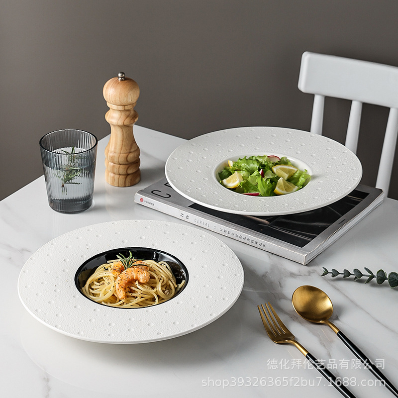 日本式食器陶磁器麦わら帽子皿ホテルレストランパスタ皿大サイズスープ皿家庭用料理皿展示皿卸売り