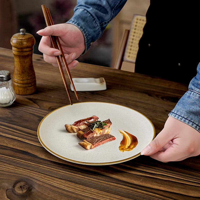 レトロな創作ステーキ皿、朝食皿、和風石目模様食器、家庭用洋食皿、平皿、釉薬磁器