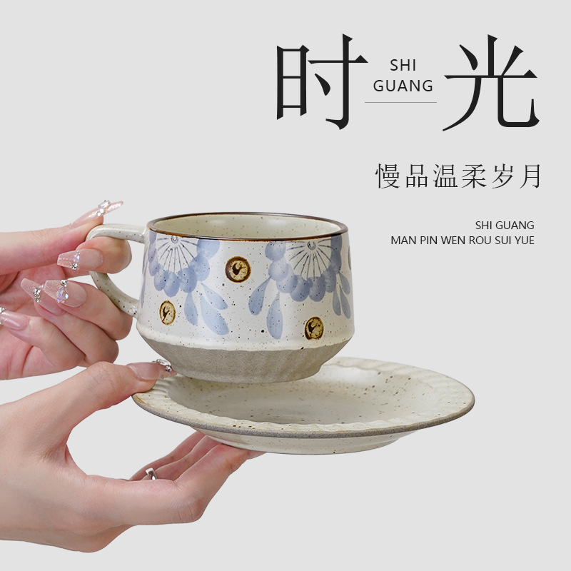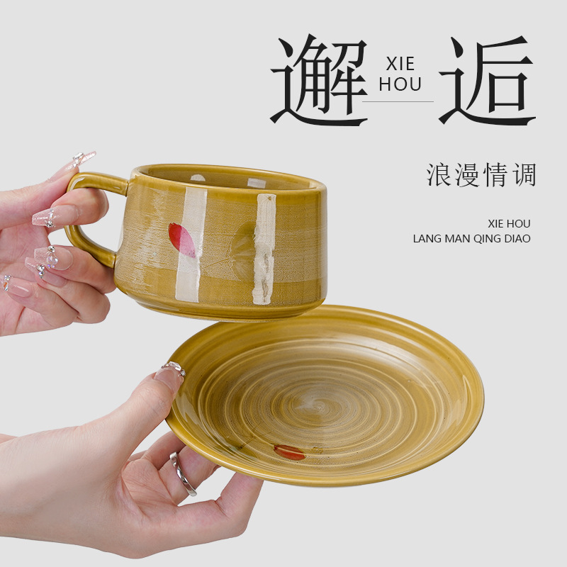 个性复古高级感釉下咖啡杯碟小众手礼陶瓷马克杯办公室牛奶咖啡杯