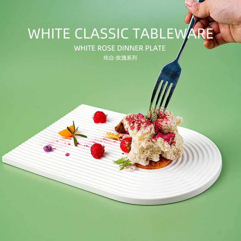 純白レリーフ食器陶磁皿北欧アメリカ式平皿スープ皿果物皿ホテルレストランシンプル風ステーキ皿