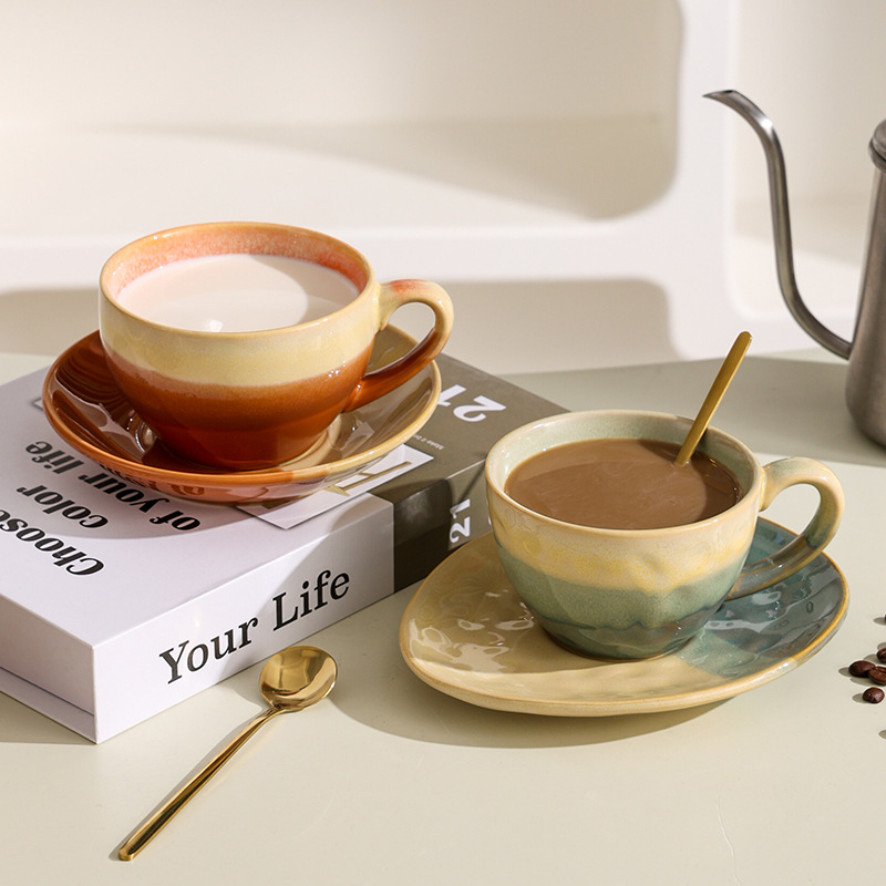 レトロセラミックコーヒーカップ皿セットアフタヌーンティーカップシンプルな家庭用個性ミルクカップ洗練されたアイデア