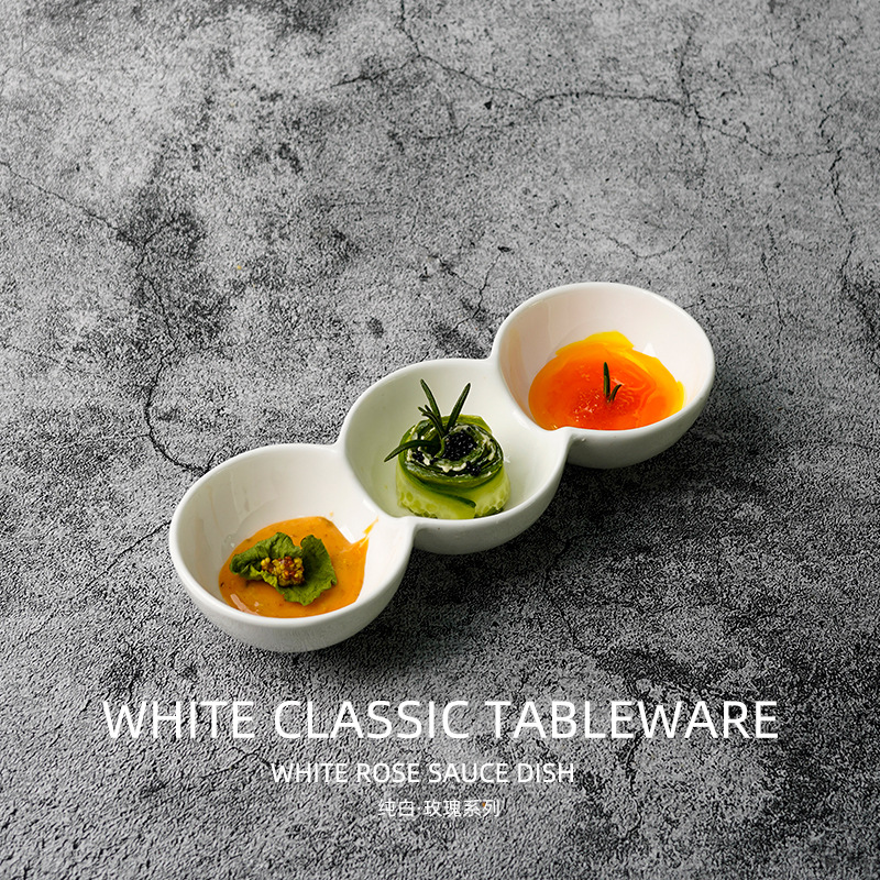 陶磁分格付皿三格日韓焼肉調味皿軽食皿創意鍋調味酢皿皿皿