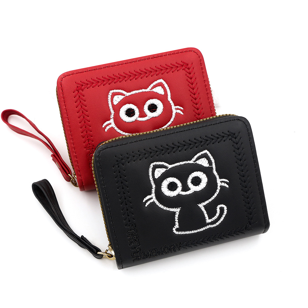 1688新しい刺繍の猫の女性の短い財布の多いカードの位置のファスナーの0財布の手はカードのカバンの財布の卸売りを挽きます。
