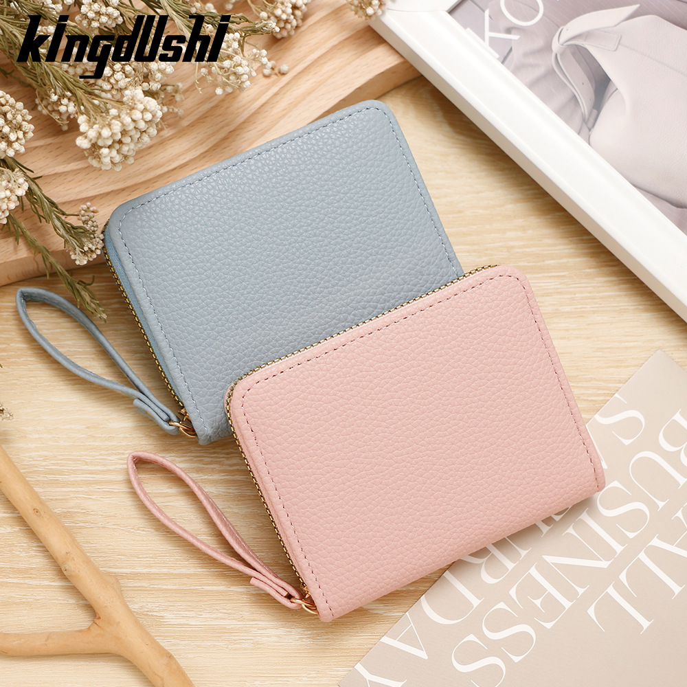 新型PUレディースショート財布コイン小銭入れ純色ライチ柄大容量ファスナー財布カバン卸売り