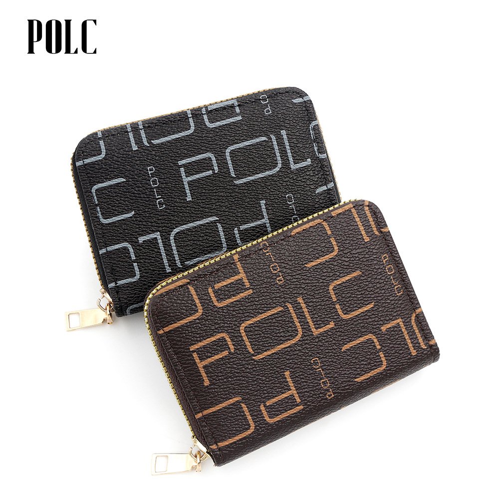 クロスボーダー新型ファスナー小銭入れショート財布レディースファッション純色プリント多卡位小銭入れwallet