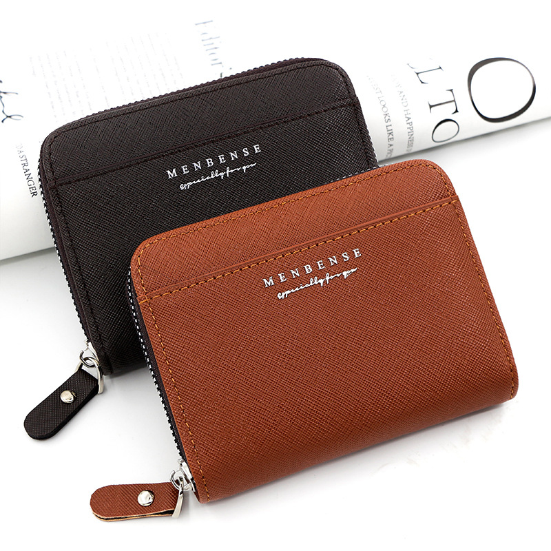 Menbense新商品メンズ財布純色ビジネスショートファスナーバッグハンドバッグ小銭入れ