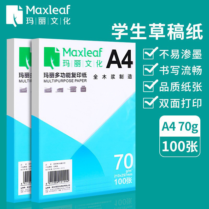 メアリーa 4紙印刷紙100枚卸売りコピー用紙70g単包事務用品全箱印刷草稿白紙