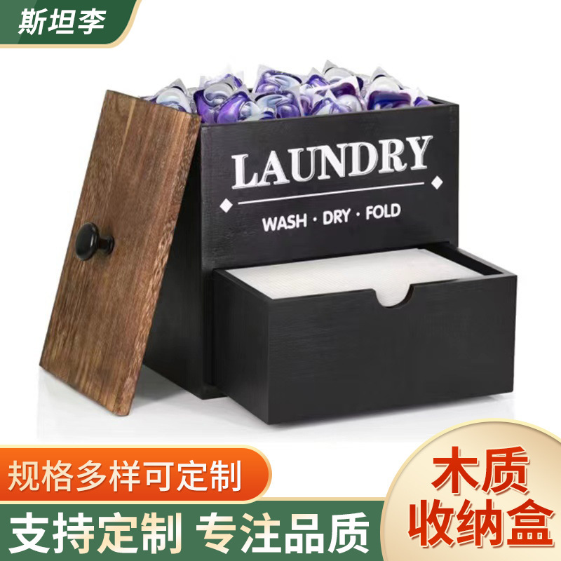 木製洗濯ボックス家庭用乾燥紙洗濯シート収納ボックス引き出し式凝縮ビーズ洗濯パウダーボックス木製収納ボックス