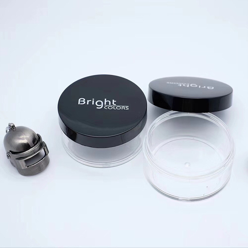 高級化粧品包装箱absプラスチック乾燥粉箱四角い穴の網栓円形透明粉末箱