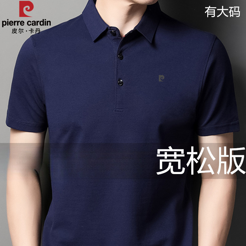 ピエールカルダン 綿100% 半袖Tシャツ 中年男性 無地 ラペル ファットマン コットン ゆったり プラスサイズ