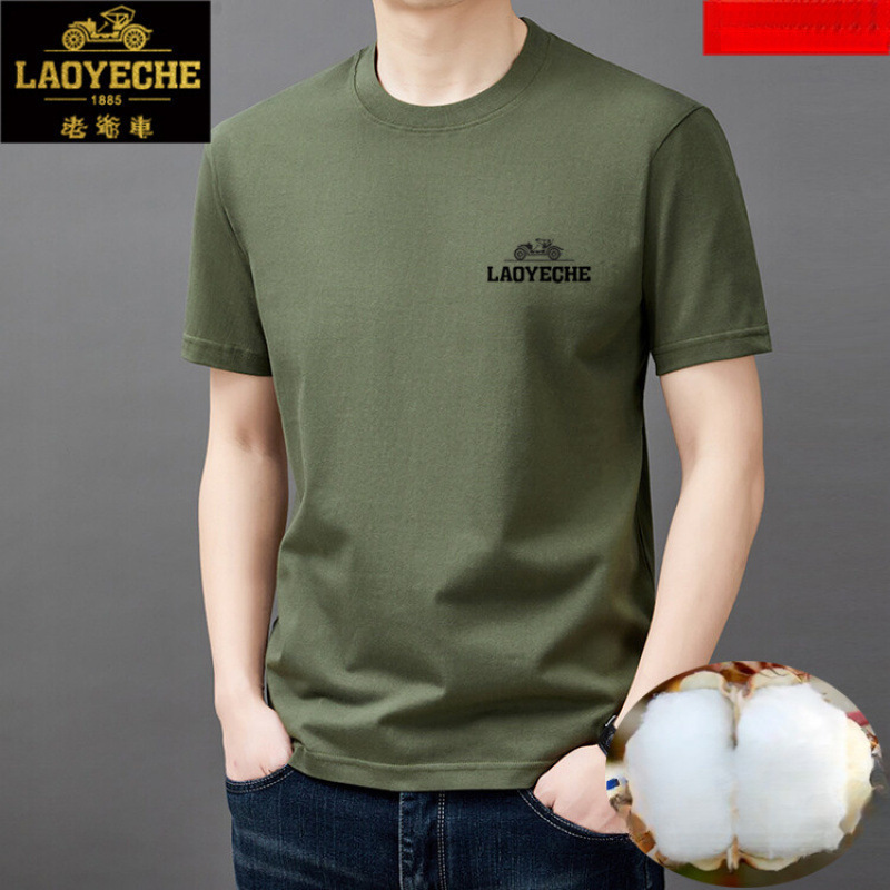 クラシックカー薄手半袖新作純綿カジュアルメンズ夏Tシャツゆったり高級若者と中年ラウンドネック半袖