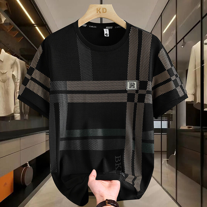 メンズ半袖Tシャツ夏スリムトレンドファッションラウンドネック半袖アイスシルクシャツクールトレンディブランドメンズ