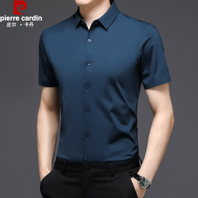 ピエールカルダン 半袖シャツ メンズ 夏 ノンアイロン アイスシルク 薄手 ビジネス ハイエンド シームレスシャツ